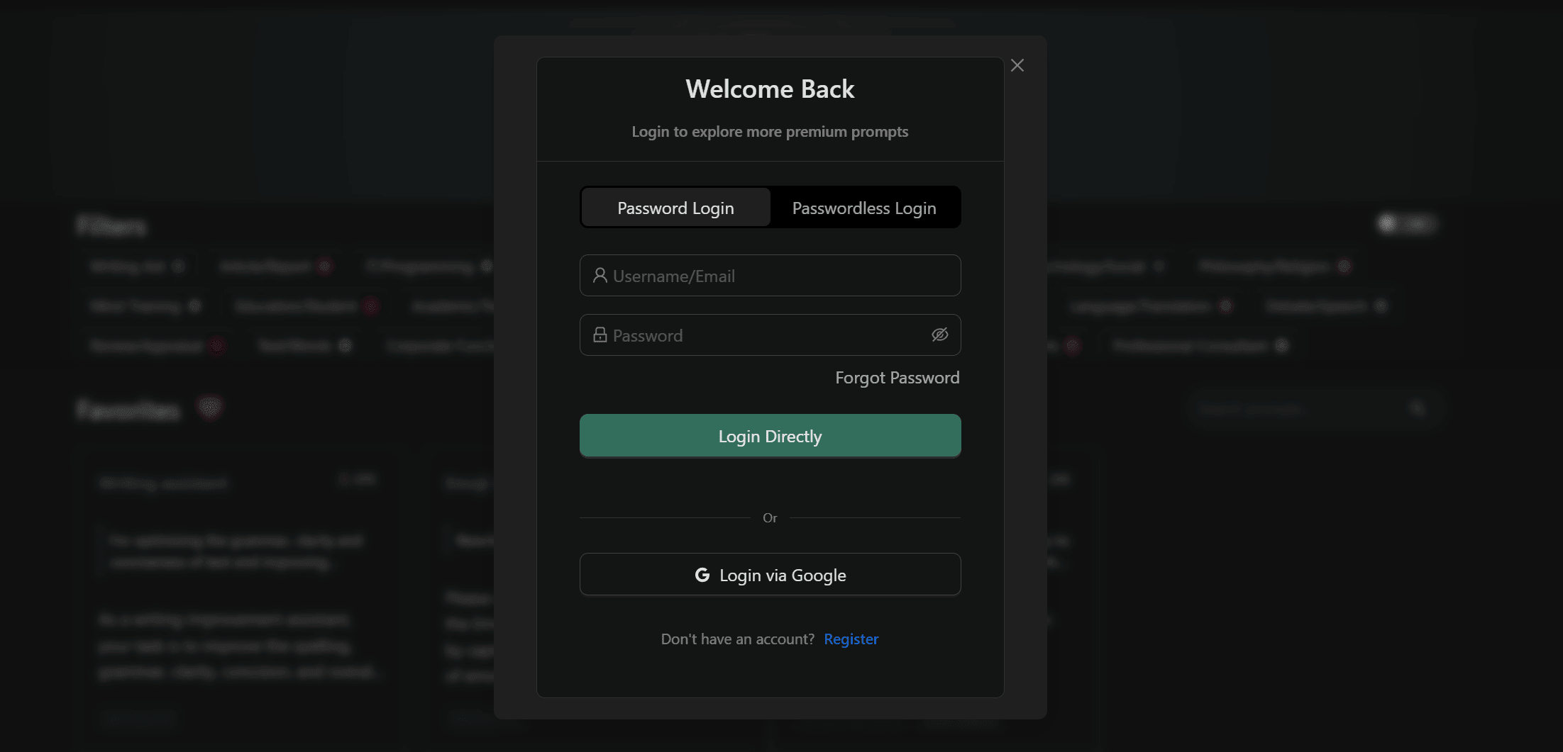Click the Google icon on the login page to log in with your Google account with one click.