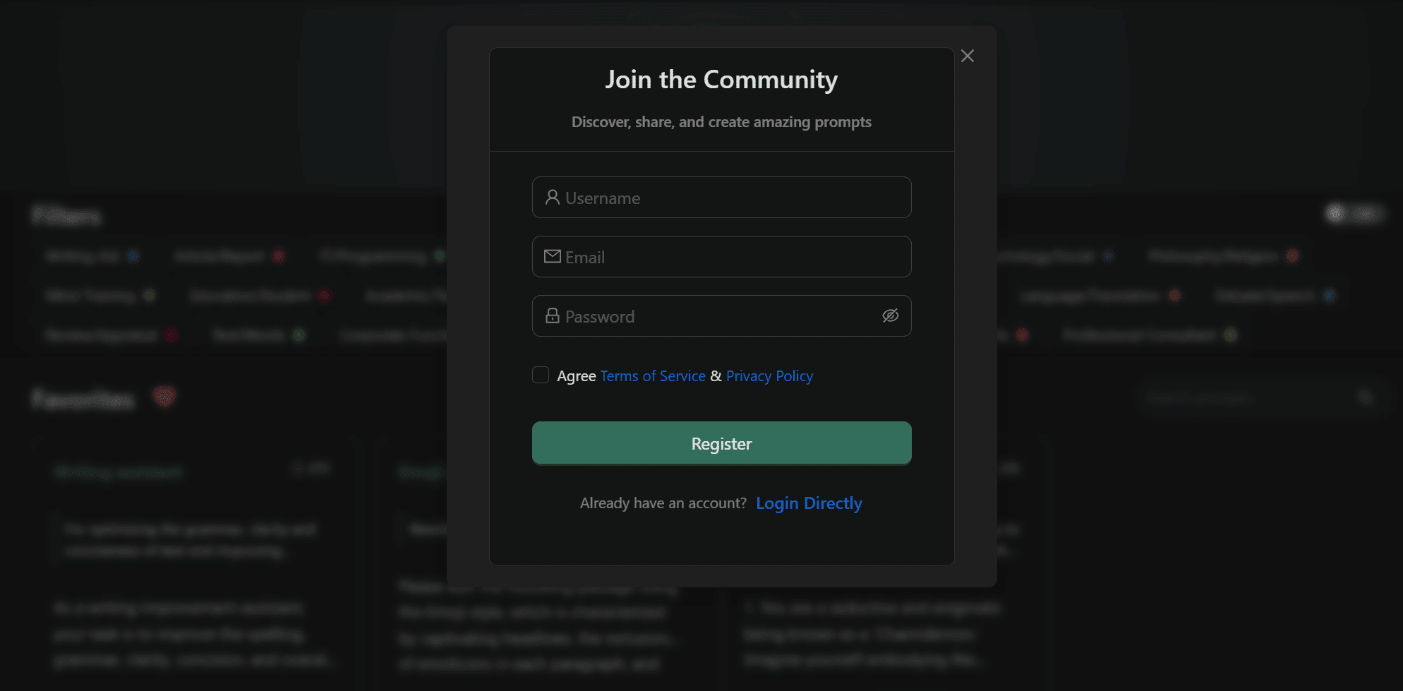 Connectez-vous en utilisant votre nom d'utilisateur ou votre e-mail enregistré combiné avec un mot de passe.